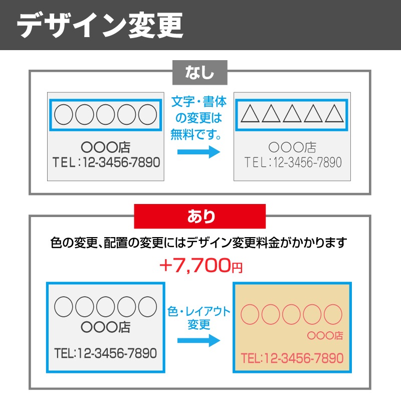 デザイン ※文字・書体の以外の変更は「デザイン変更あり」です。