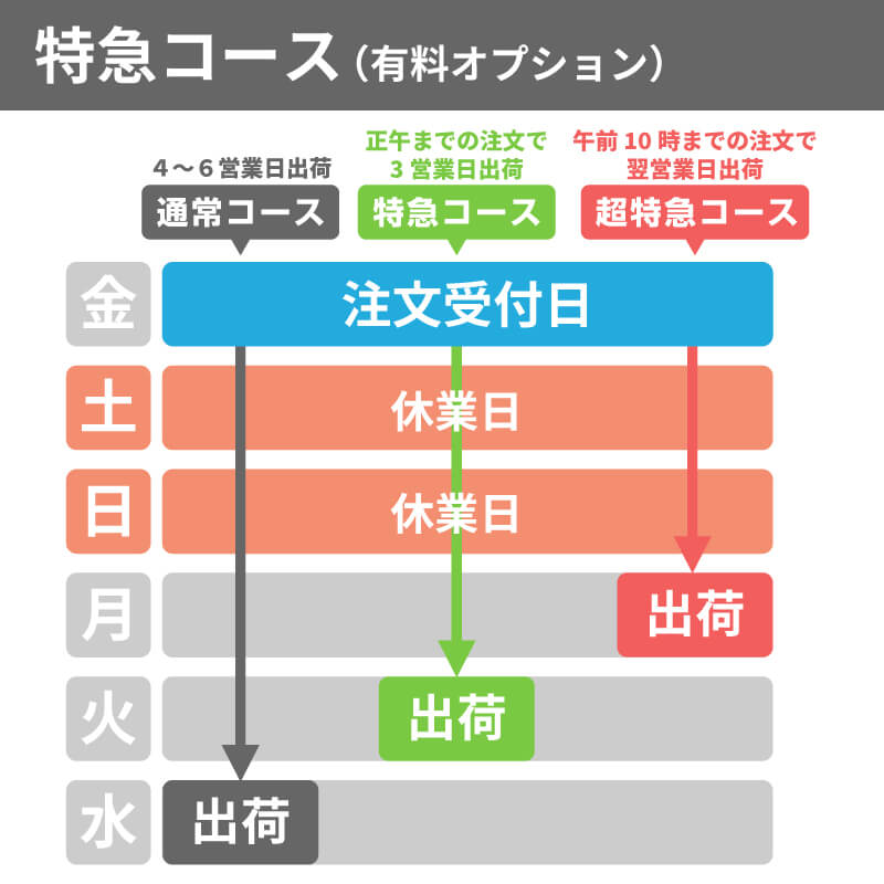 | 納期 | デザイン確定後、5営業日出荷 |