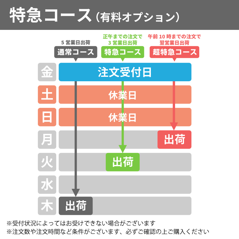 ・注文受付完了から商品発送まで約4~6営業日かかります。(お届けまでの目安はこちら)