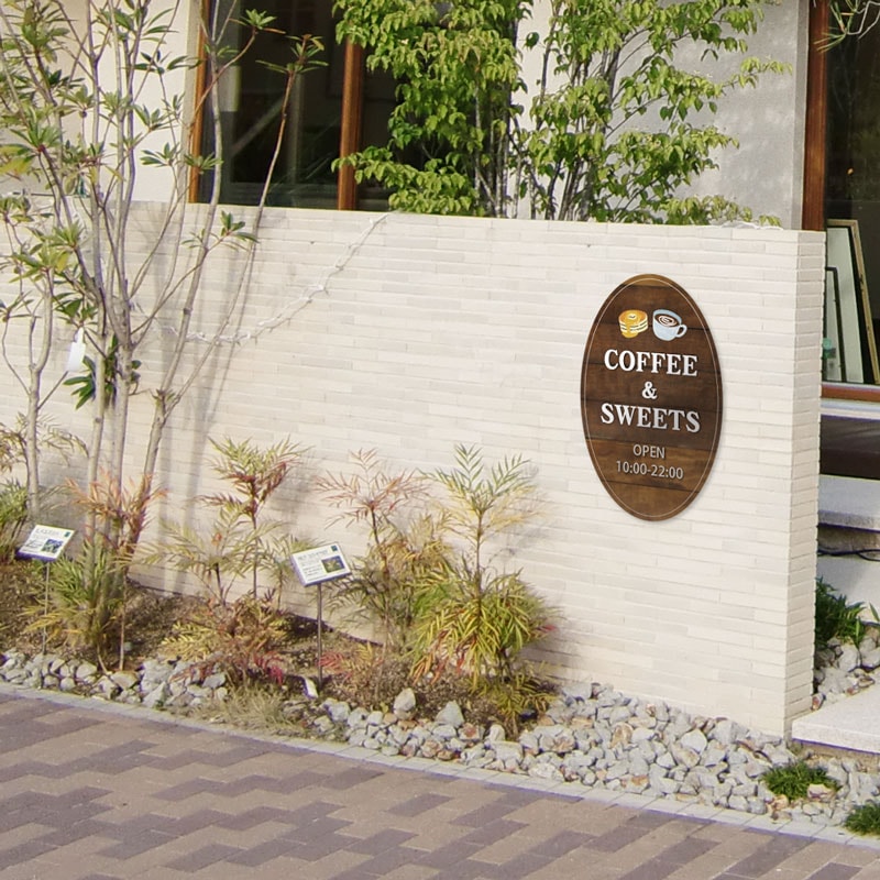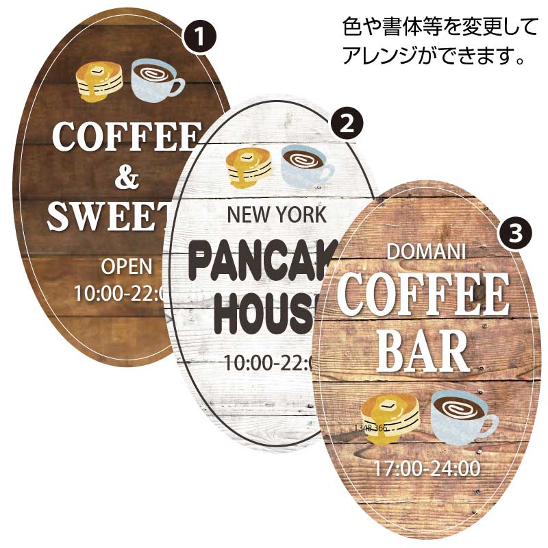 プレート看板 木製風 木目風 型抜き看板 形状カット看板 楕円 オーバル カフェ 喫茶店 おしゃれ