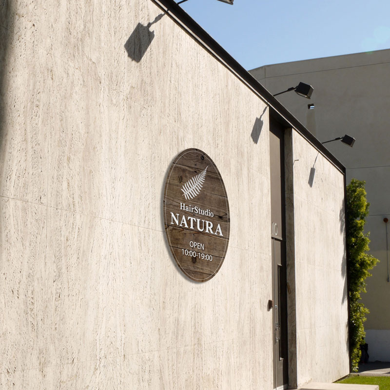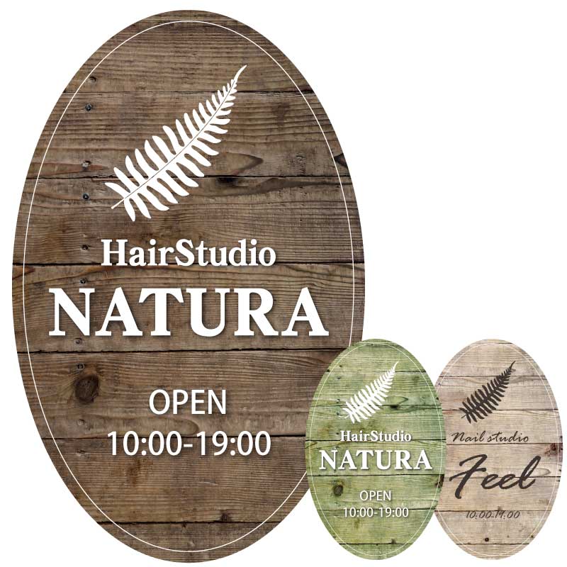 プレート看板 木製風 木目風 型抜き看板 形状カット看板 楕円 美 ヘア サロン おしゃれ
